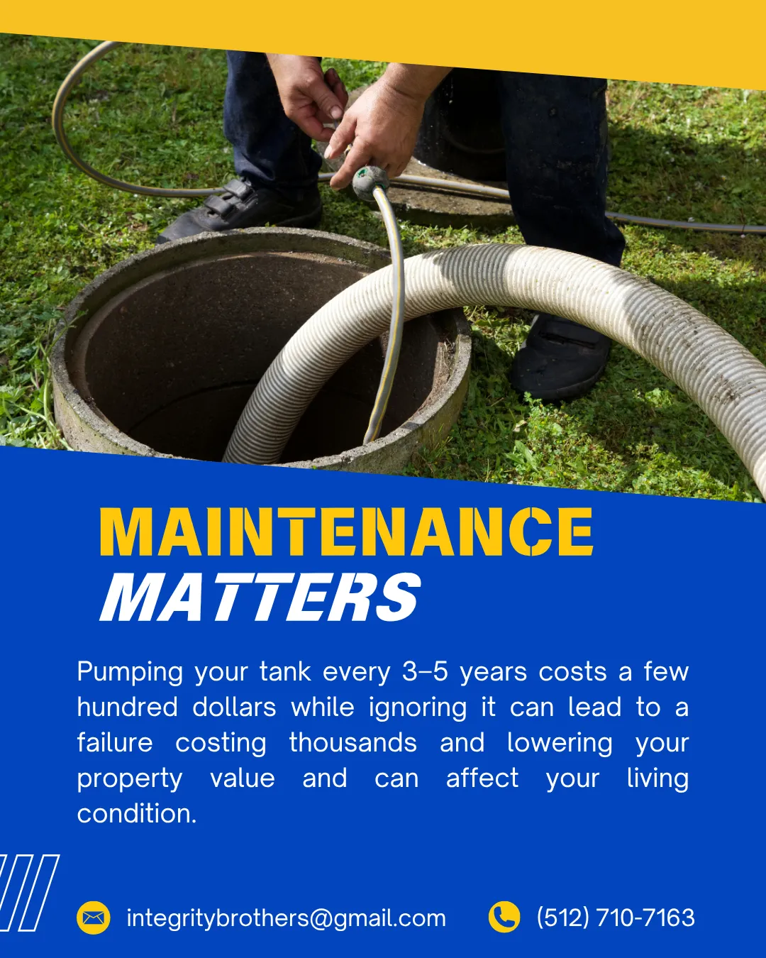 Schedule inspections yearly and pump-outs about every 3-5 years to catch issues early. Repairs and pump-outs are for licensed professionals only, as tanks can hold toxic fumes in confined spaces. The Cornerstone Team can handle it for you safely.